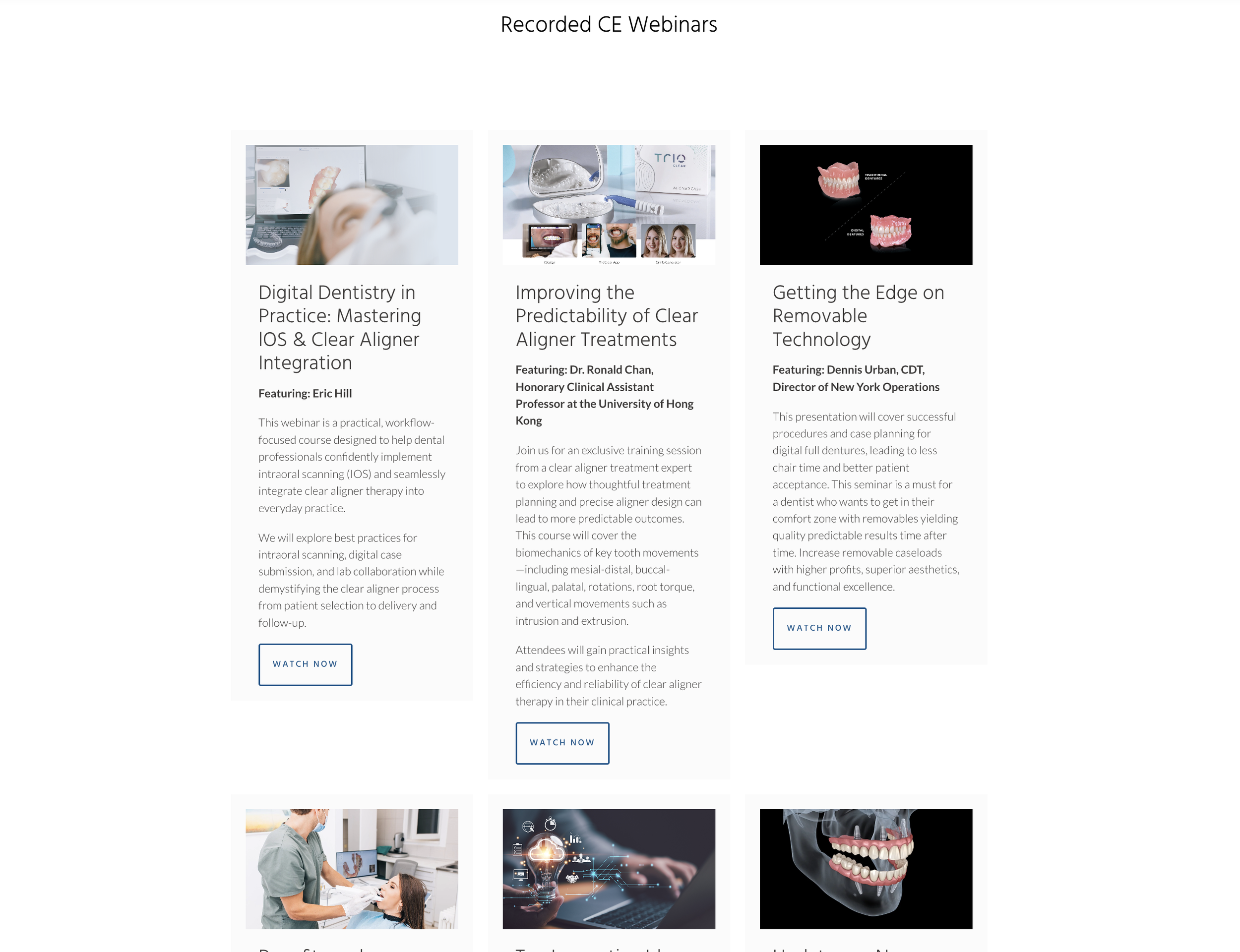 Stay current with the advancements in restorative and cosmetic dentistry through our CE courses! These courses our designed to help clinicians increase case acceptance, confidently implement digital workflows, expand clinical capabilities, and deliver more predictable outcomes while growing their practice with purpose.